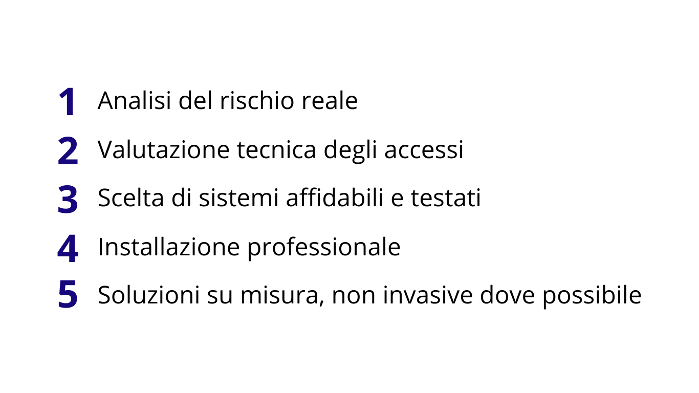 Definiamo la soluzione più idonea in base alle caratteristiche dell'edificio, al livello di rischio e alle esigenze specifiche.