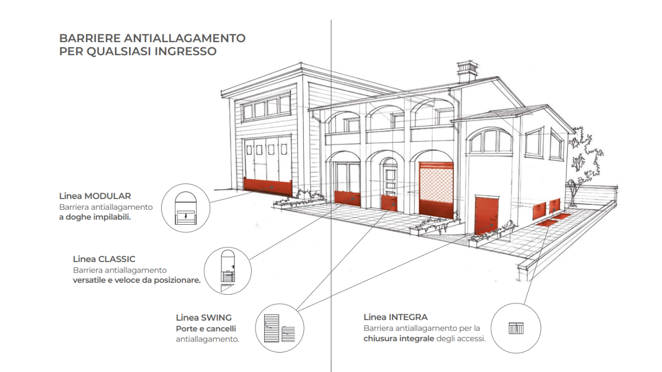 Soluzioni professionali di protezione antiallagamento per abitazioni, aziende ed edifici sensibili.